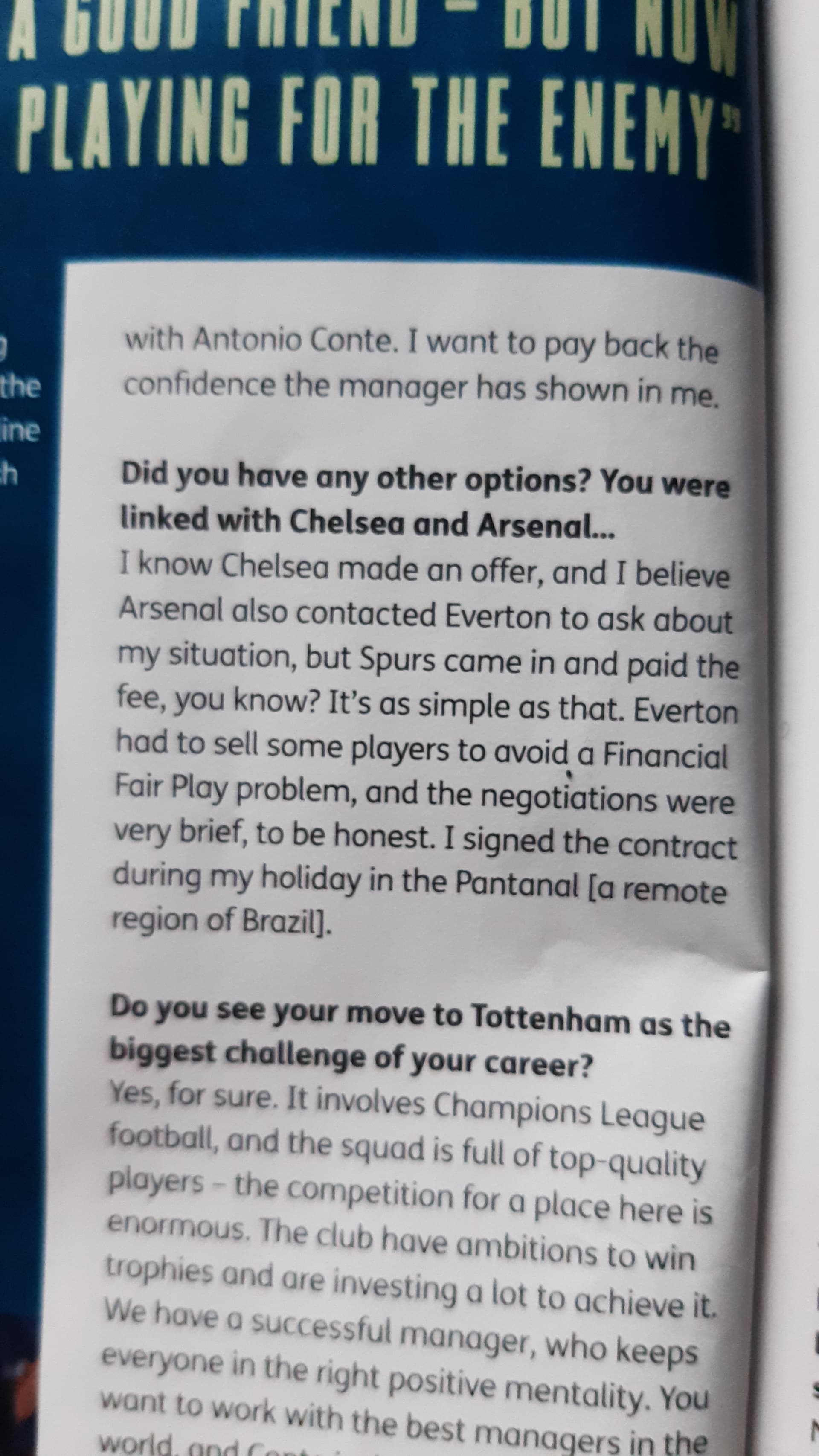 Well obviously because that who he plays for but you literally said spurs were the only team that were after him when he’s actually said Chelsea and Arsenal were interested in so much that Chelsea made an offer.