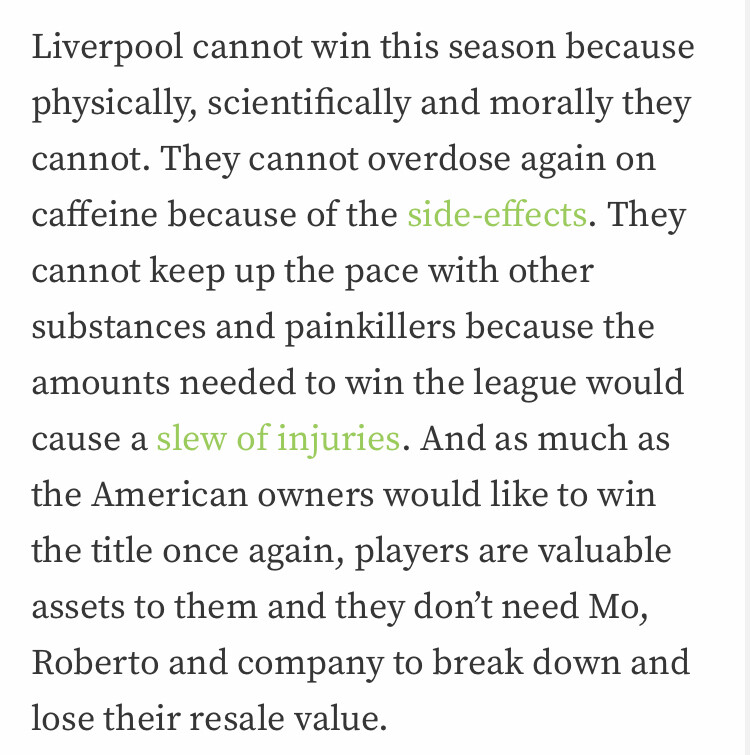 I feel like this is kind of harsh, I don’t necessarily disagree but I feel like in equal measure if you take him out of Klopp’s system, Klopp doesn’t have the same kind of success he’s had. Mane for me has probably been their most important player over these last few years bar VVD.