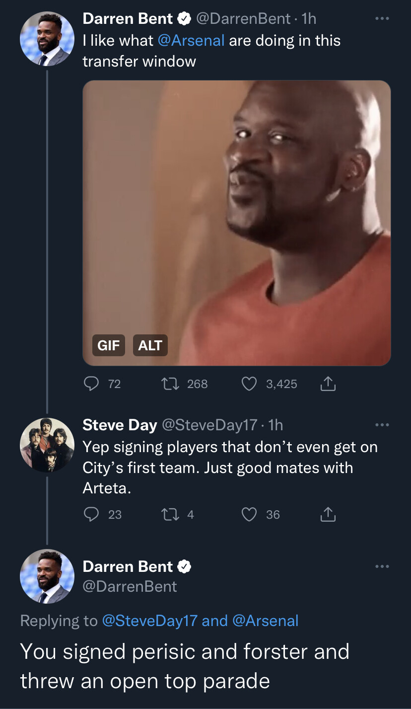 The same way I can appreciate the role Perisic will play at Spurs any reasonable football fan should be able to appreciate the quality Jesus and Zinchenko bring to Arsenal and see them as two astute pieces of business.