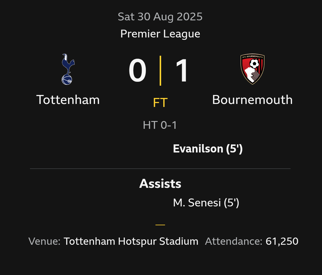All joking aside, the scum seem more formidable this season. Couple of decent signings in Kudus and Simons. Plus they have a competent manager that can get something out of the likes of Richarlison and the discount Delle Ali.