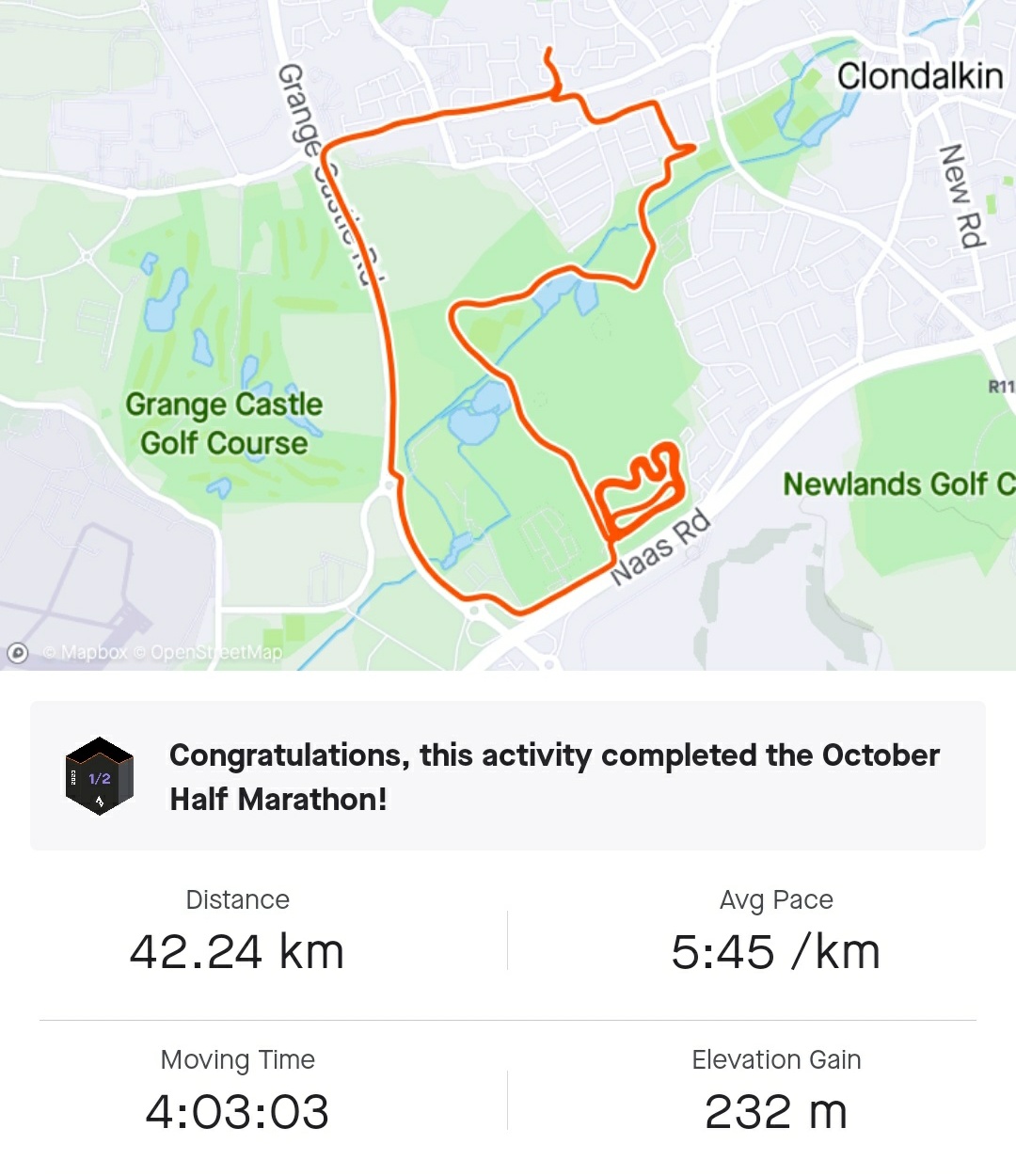 Yea was solo. Dublin has been cancelled since May so I hadnāt started that prep yet but I trained for this over 10 weeks or so as was starting from having built up to a half anyway. This was actually attempt 2 as I tried a couple of weeks back but hadnāt got it in me/went out too hard.