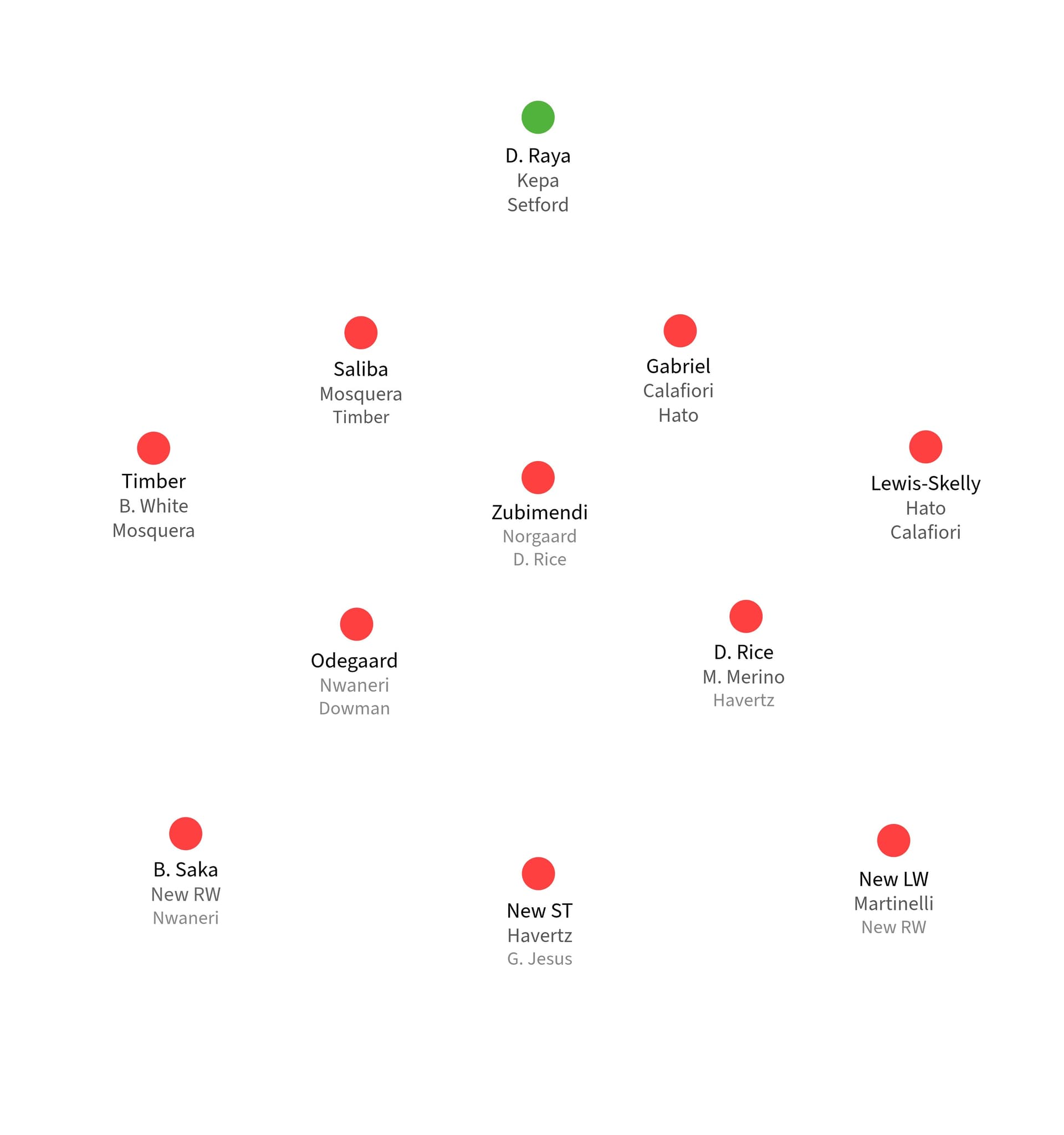 We’re dependent on Rice, Havertz, Martinelli and Trossard for the left midfield/(false) striker position. None of these guys possess the technical level to play the short passing game required too break teams down.
