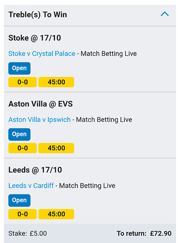 Said id never put my bets up until after. But got these at half time…