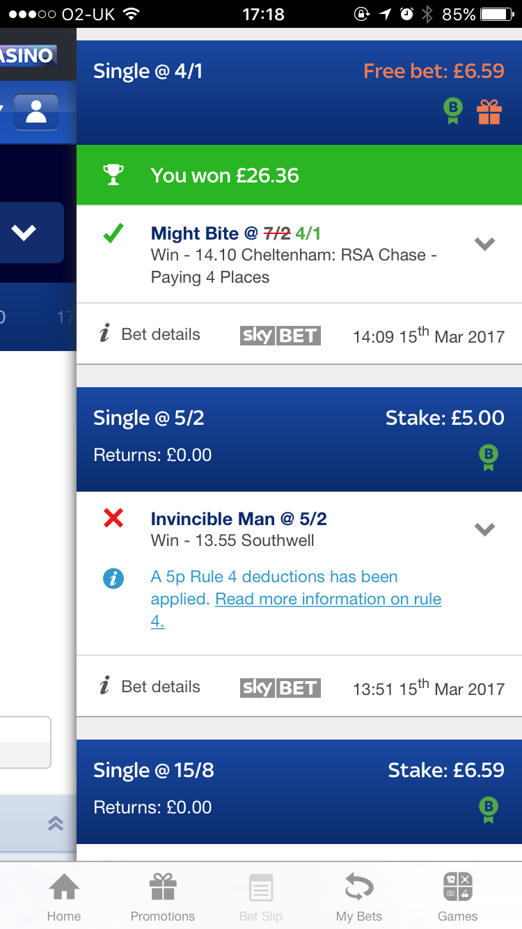 With Sky Bet if your horse loses the first race you get your money back as a free bet