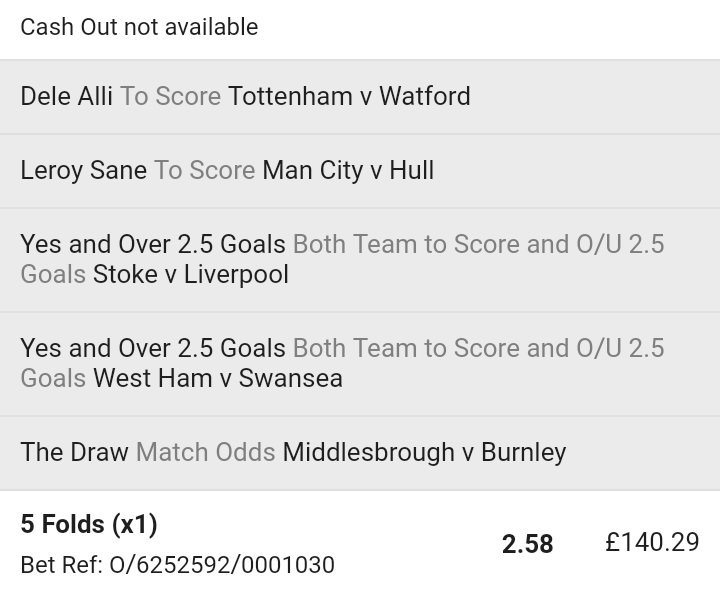 The worse part is I was playing football and left my phone in my car. Our game overran and I got to my phone a min after the Bournemouth goal. Otherwise I would have certainly cashed out. Guttedā¦