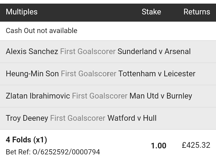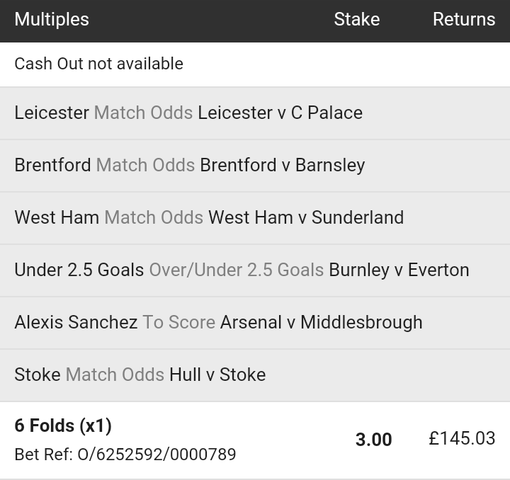 Sanchez anytime and Stoke to win were my shouts, selected in part to boost the odds a little bit.