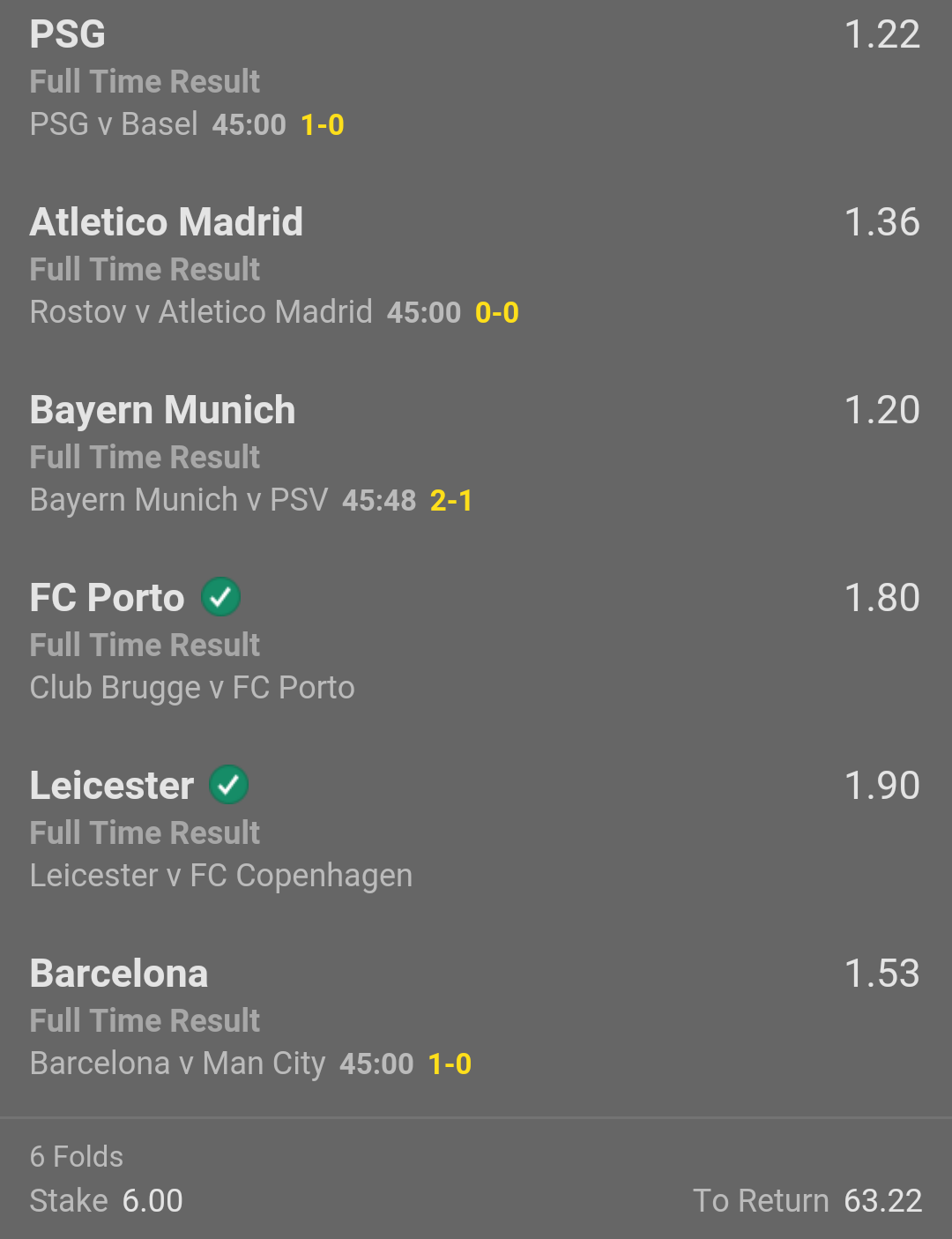 Also had 2 x 100/1 request a bets running but missed out by a few booking points and the odd goal