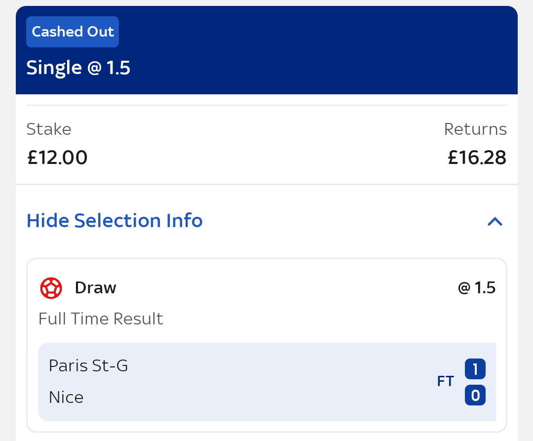 Saw PSG v Nice was 0-0 in the 90th minute and I couldn’t believe the odds.