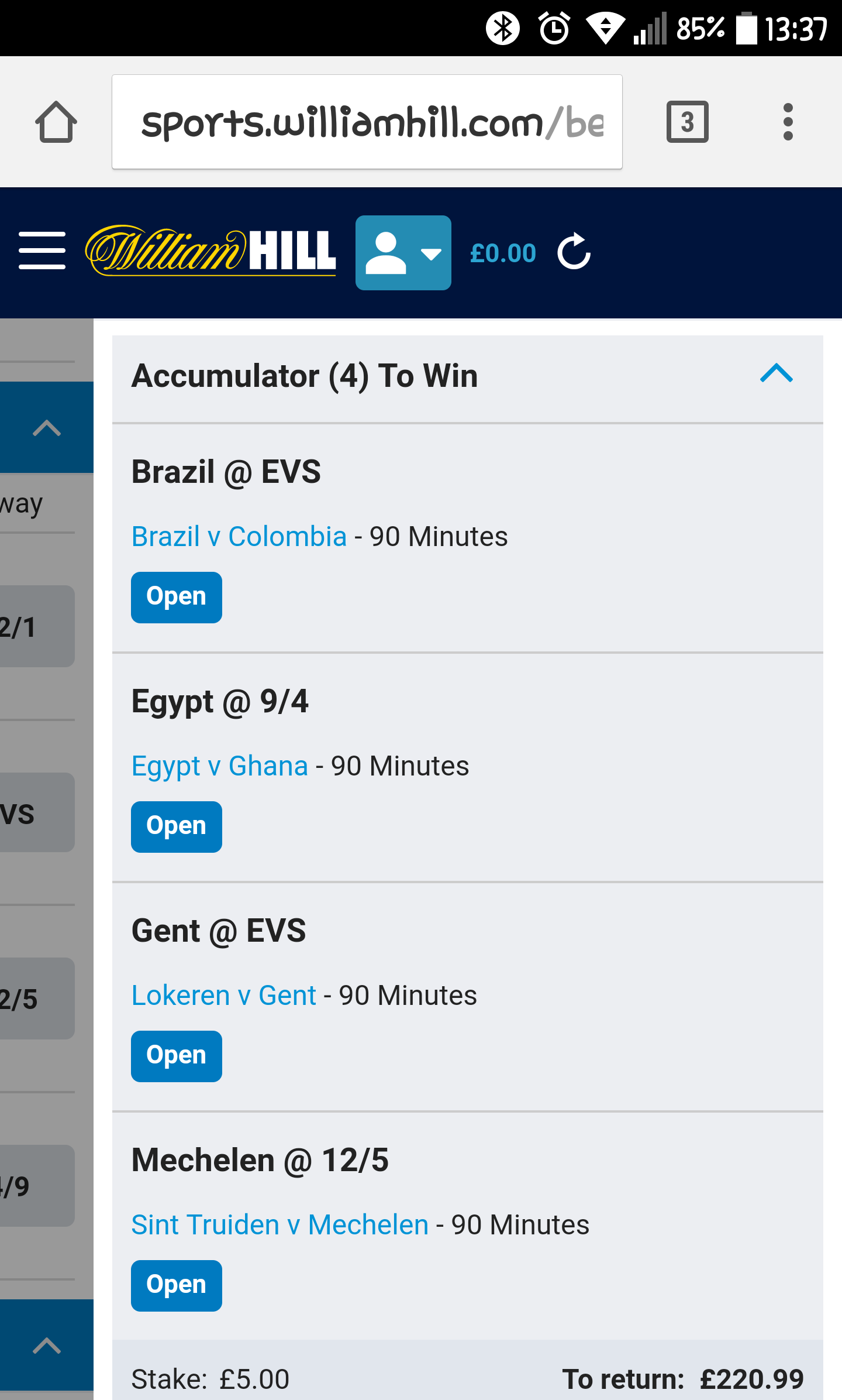 Leeds, Gent and Hearts all drawing. Only half an hour left for Gent and a half for Leeds and Hearts. Not looking likely basically