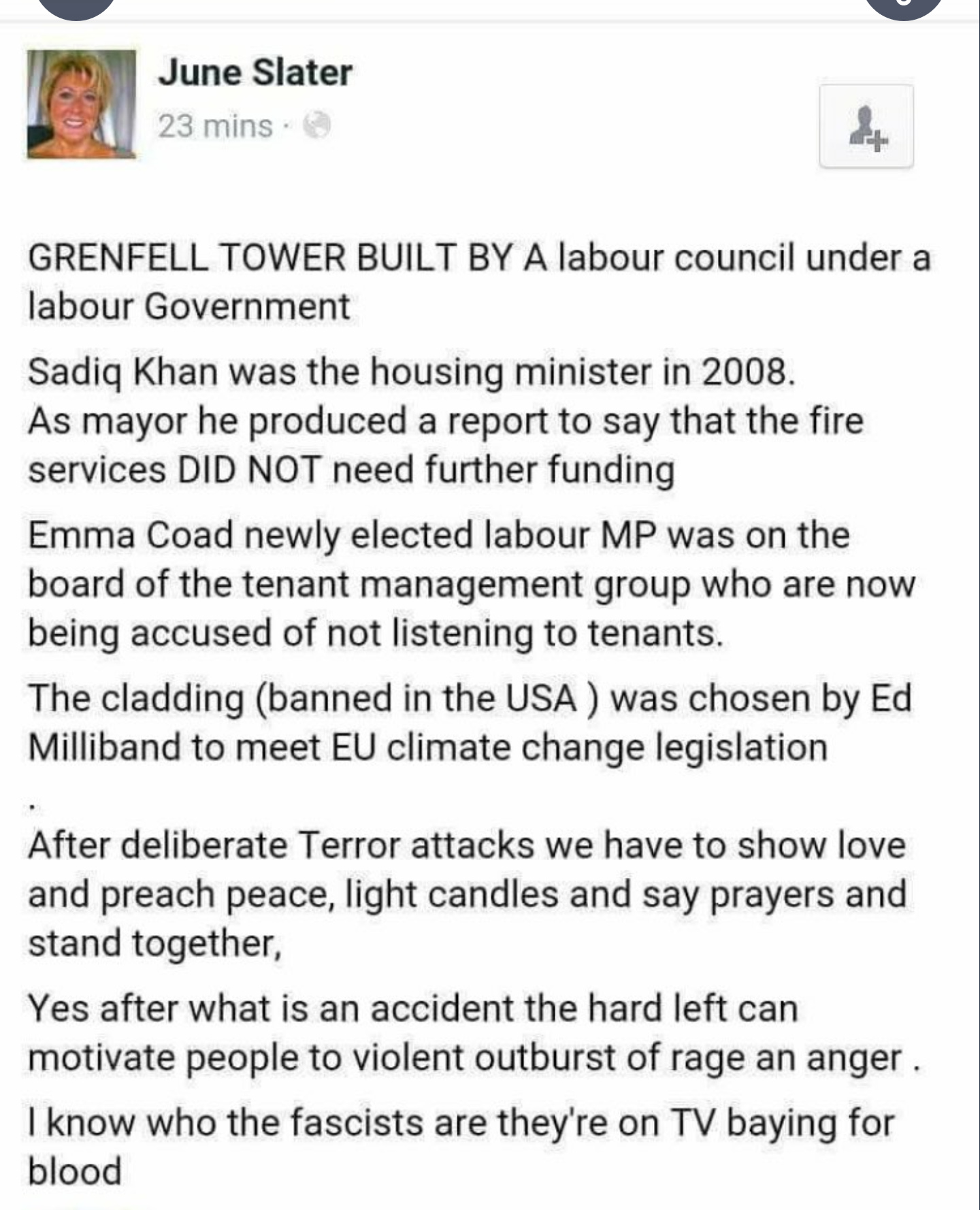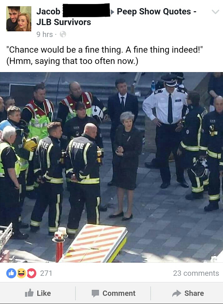 Sadiq Khan was housing minister in 2008. Well when I looked into the Grenfell Action Group, who have been campaigning for the implementation of safety measures, I can see that they didn’t even exist until 2010. Were Grenfell residents requesting change in 2008? Also I’m pretty sure Sadiq Khan was never a housing minister lol. I also can’t find any evidence of Sadiq’s report regarding fire services, but even if he did say they don’t need further funding, that’s totally different than actively cutting funds, closing stations and sacking firefighters, which is what the Tories have done.
