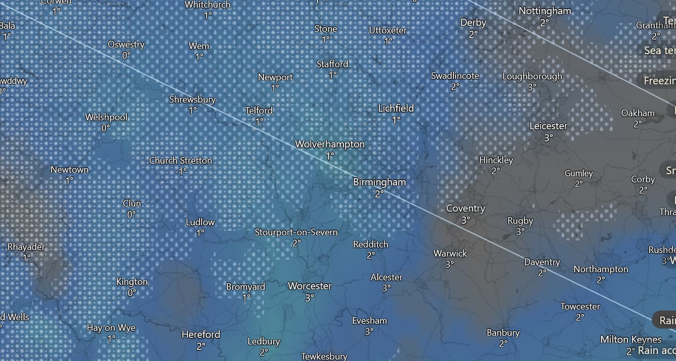 Hmmm. Borderline temps for tomorrow night’s match. Most likely to be wet snow but even 0.5 oC difference either way could be the difference between rain and big flakes of snow.