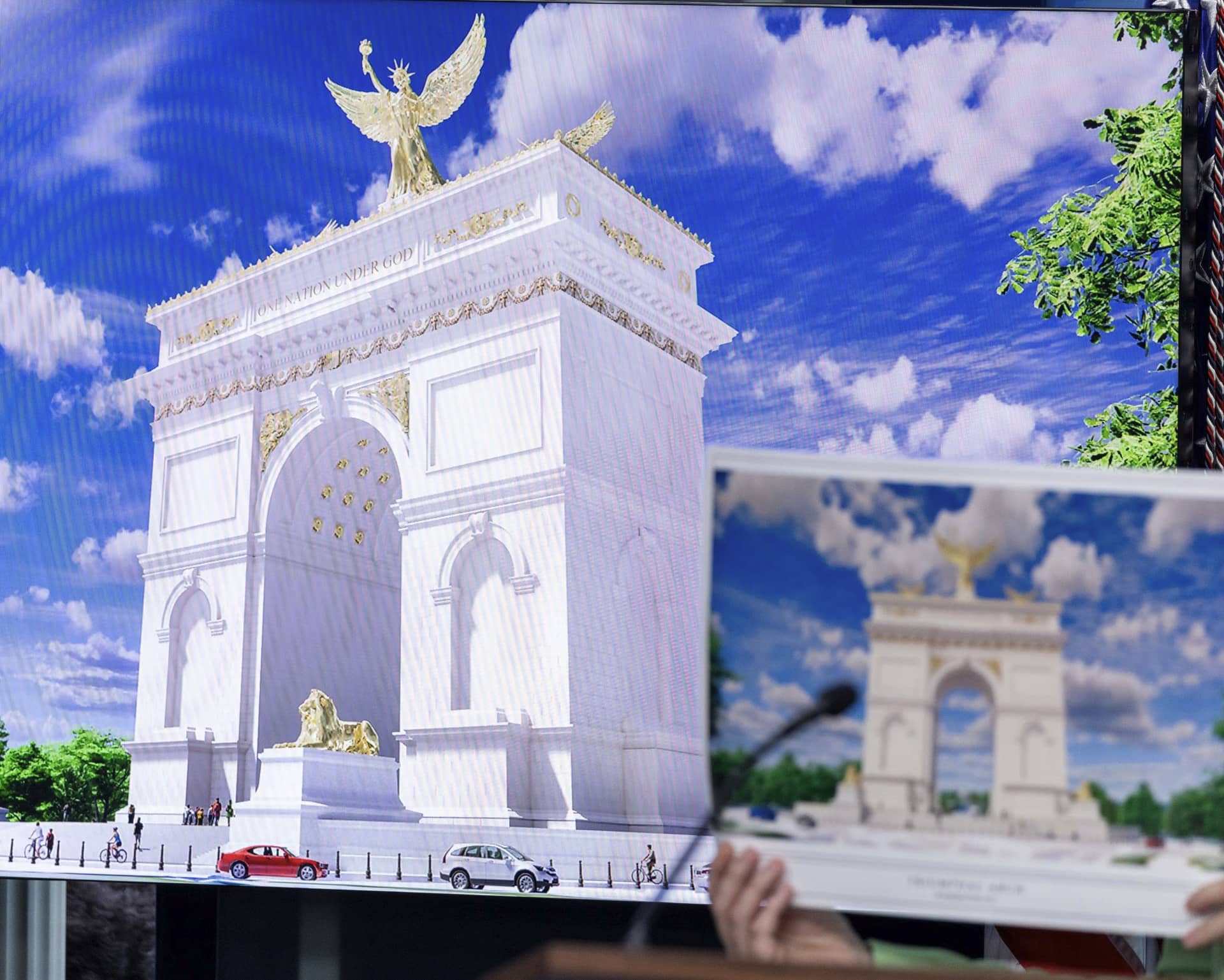I see the planned arch in Washington is going to be 200m taller than the arc de triomphe in Paris. His press team hilariously keep referring to it as the “arc” seemingly oblivious that it means “arch” in French and exposing why he wants a larger one than the arc he saw in Paris. Sunglasses on, it’s got a lot of gold on it, naturally.