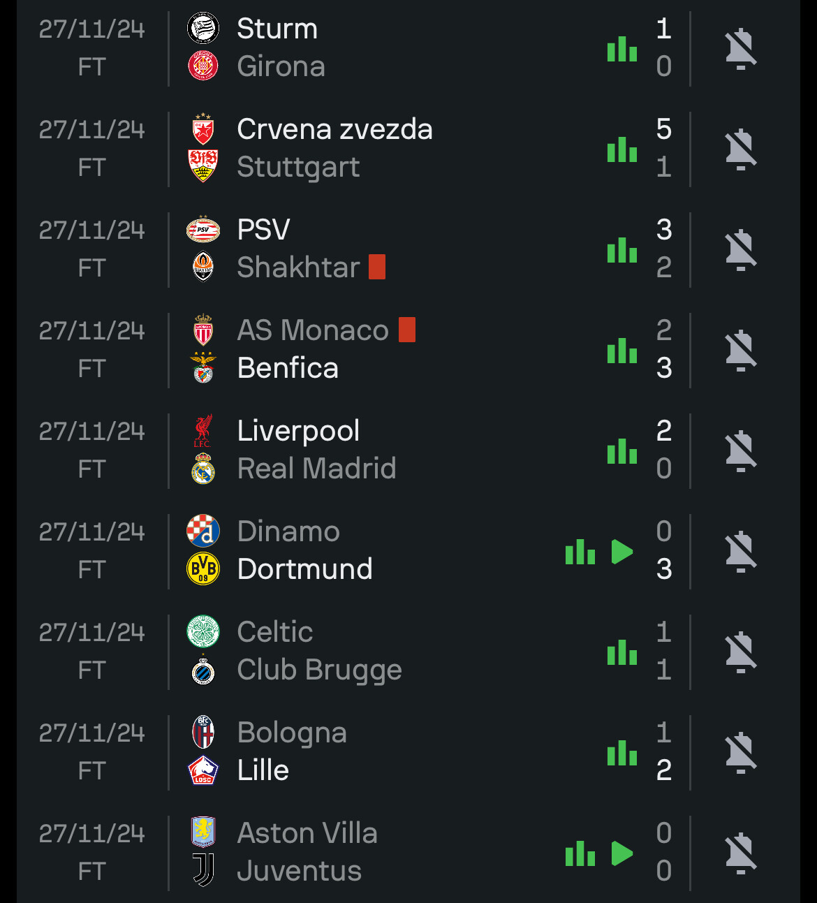 For example Brest (10) play PSV (8) next and Sporting (10) play Brugge (7).