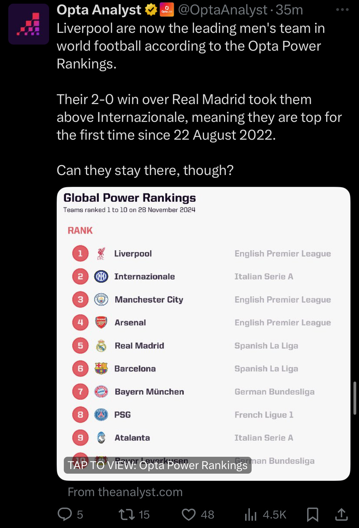 Weâve also got good chance to move up next game if we win. Barca play Dortmund, leverkusen play Inter and Madrid play Atalanta
