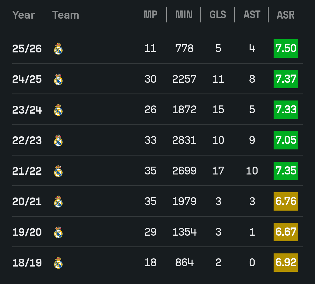Fairly positive Vinicius has done that only once in his entire time at Madrid