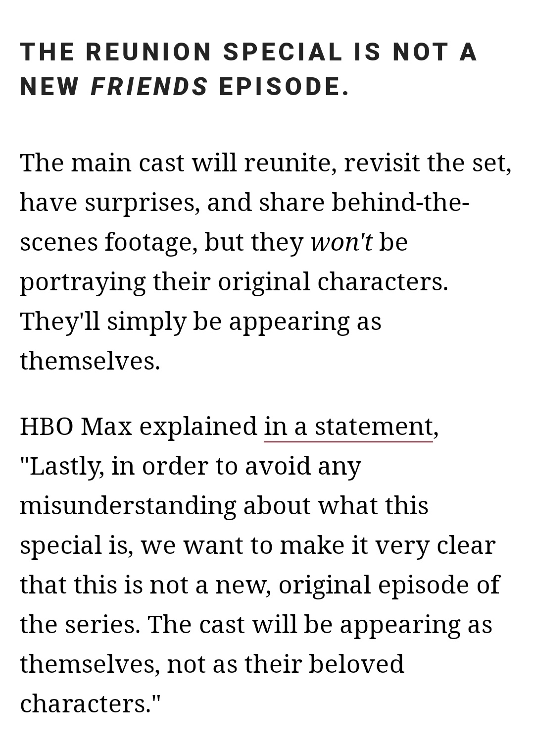 I’m glad they are not trying to come up with a storyline for a 50 odd year old Joey Tribbiani and a boring middle aged dad Ross. There’s no reason to care about that and I can’t see how you make it good or interesting.