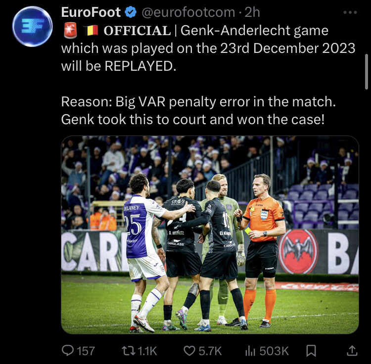 Consider the speed of the game, use of cameras that run at 50 FPS. Quite often the still image used doesn’t capture the precise point of contact with the ball. The lines are at least 6” wide. And yesterday, for example, the line indicating Trossard being offside, wasn’t even drawn from the correct position of his foot.
