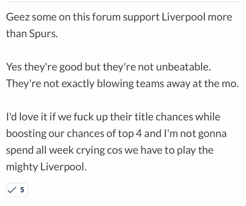 Klopp has to do us a favour against Spurs. Going into the NLD with a 5 point advantage is huge.