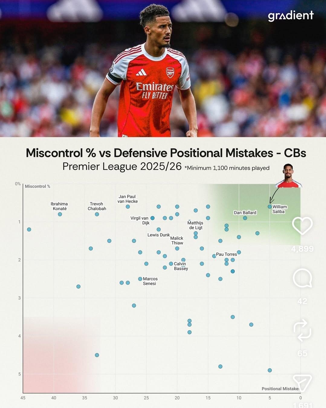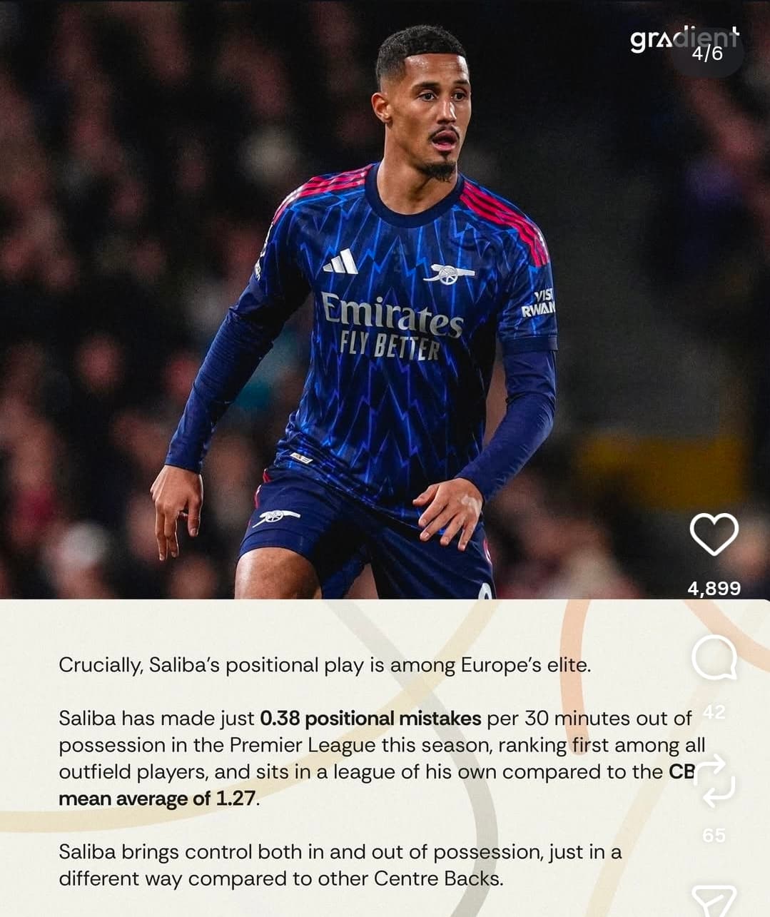 This season he has evolved into an absolute defensive force in his own right. Becoming a leader, a tactical focal point - he dictates how we structure our build up play. Against Inter, he was the initiator of basically everything.