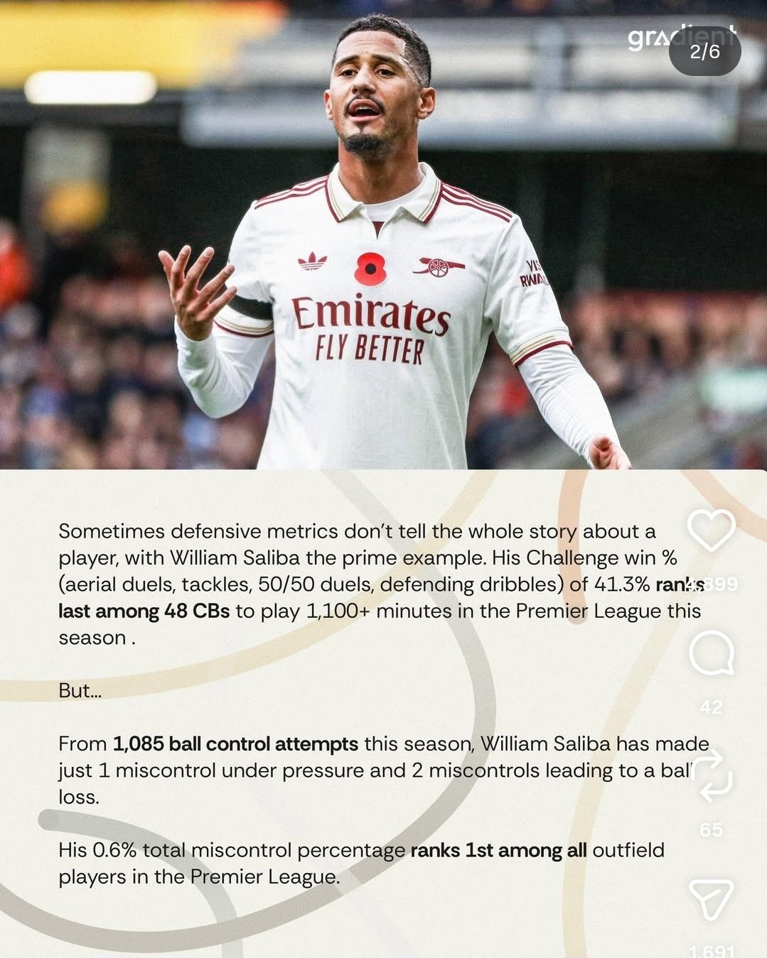I feel like Saliba used to need Gabriel next to him in order to be at his best. Like he needed a vocal, physically dominant partner.